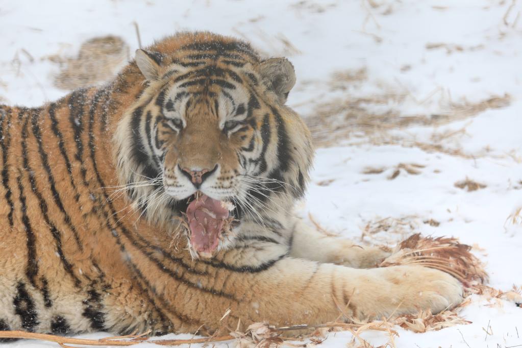 3月1日,黑龍江東北虎林園,東北虎正在進食。新華社記者 王大禹 攝