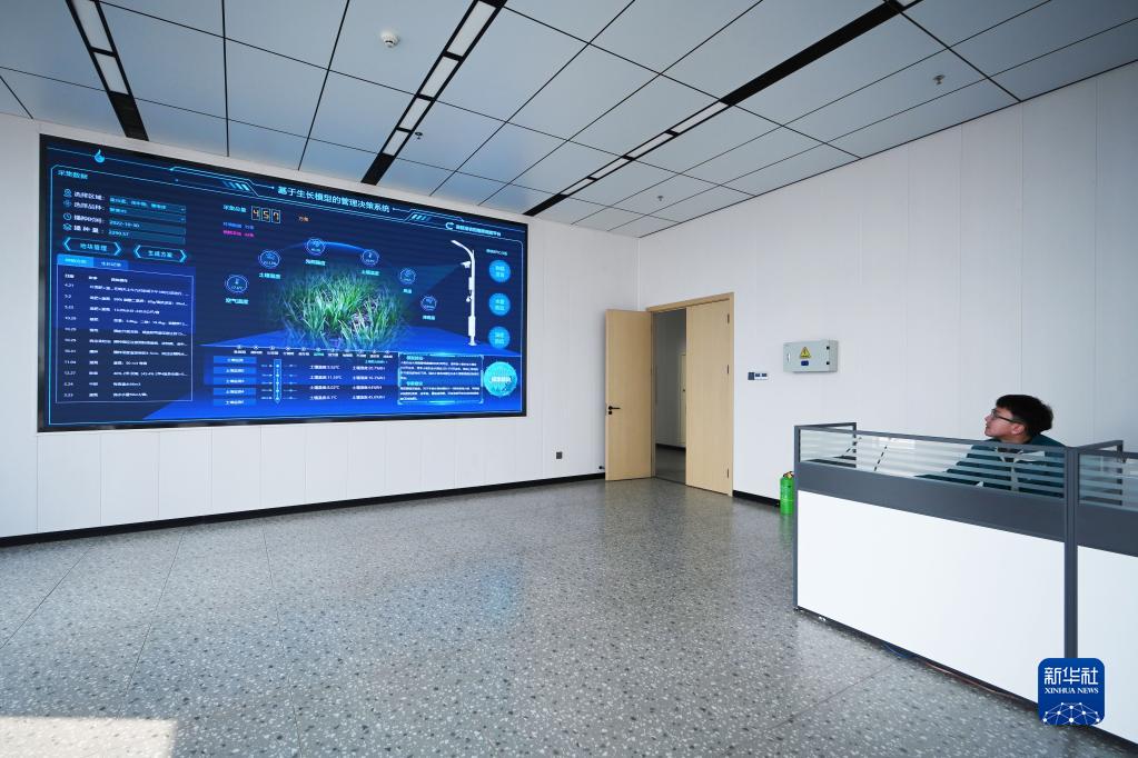 在河南省駐馬店市西平縣老王坡高標準農田示范區,王仲琦通過指揮調度平臺遠程了解小麥生長情況(2023年2月28日攝)。新華社記者 張浩然 攝