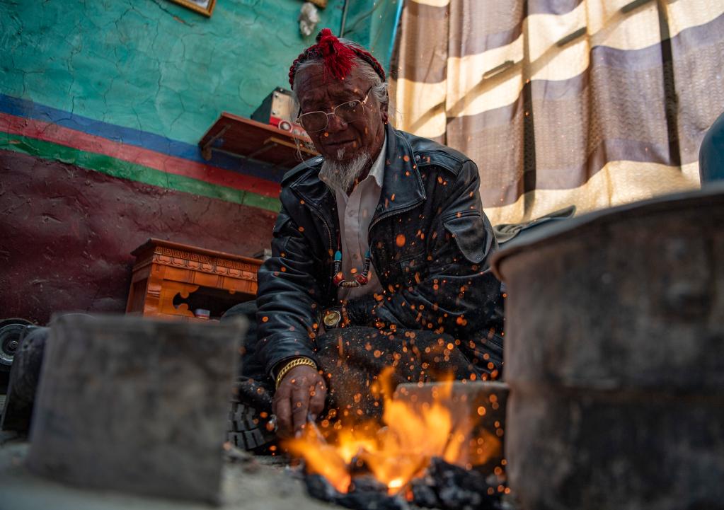 新華社拉薩3月18日電(記者曹檳 旦增尼瑪曲珠 孫非)藏刀鍛制技藝代表性傳承人次旦旺加今年已經73歲了,但一鍛打起藏刀來,就充滿活力。