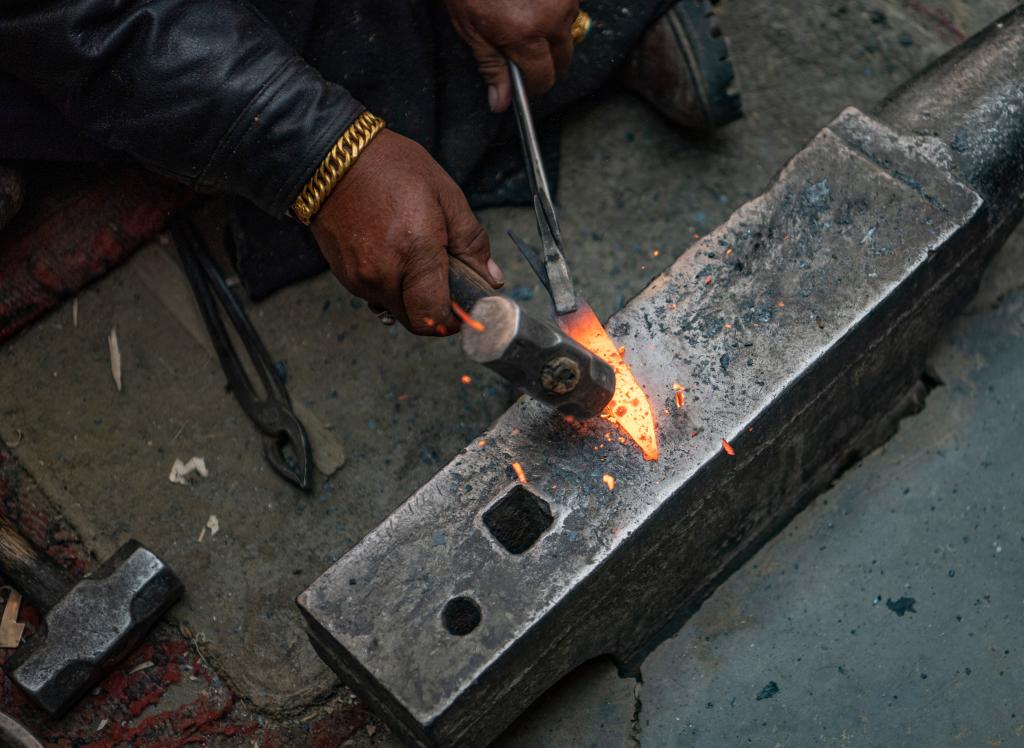 索朗珠拉從小看著爺爺、爸爸和叔叔在作坊里錘錘打打,終于在18歲中學畢業后加入了他們。