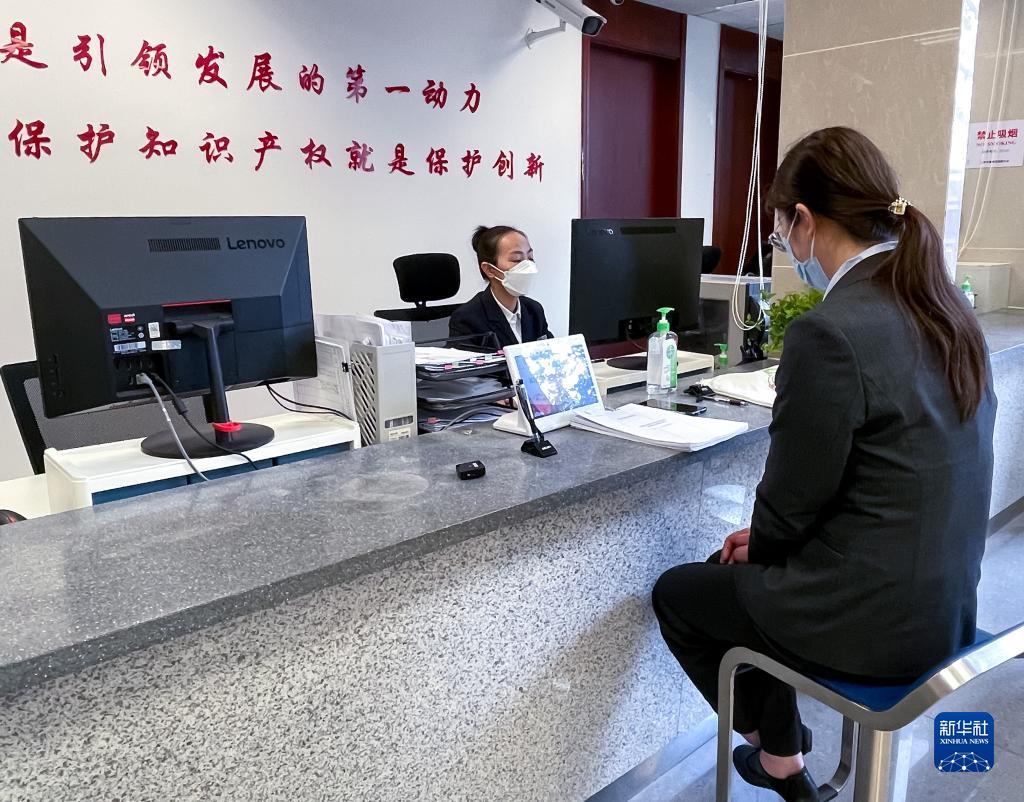 3月9日,上海市知識產權局工作人員為企業辦理業務。 新華社記者 程思琪 攝