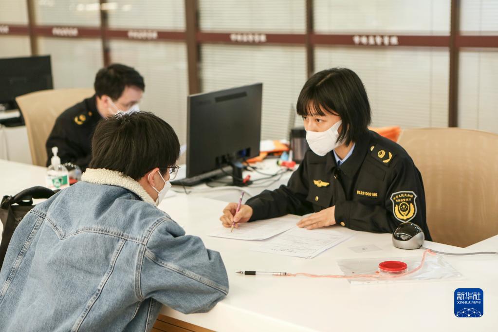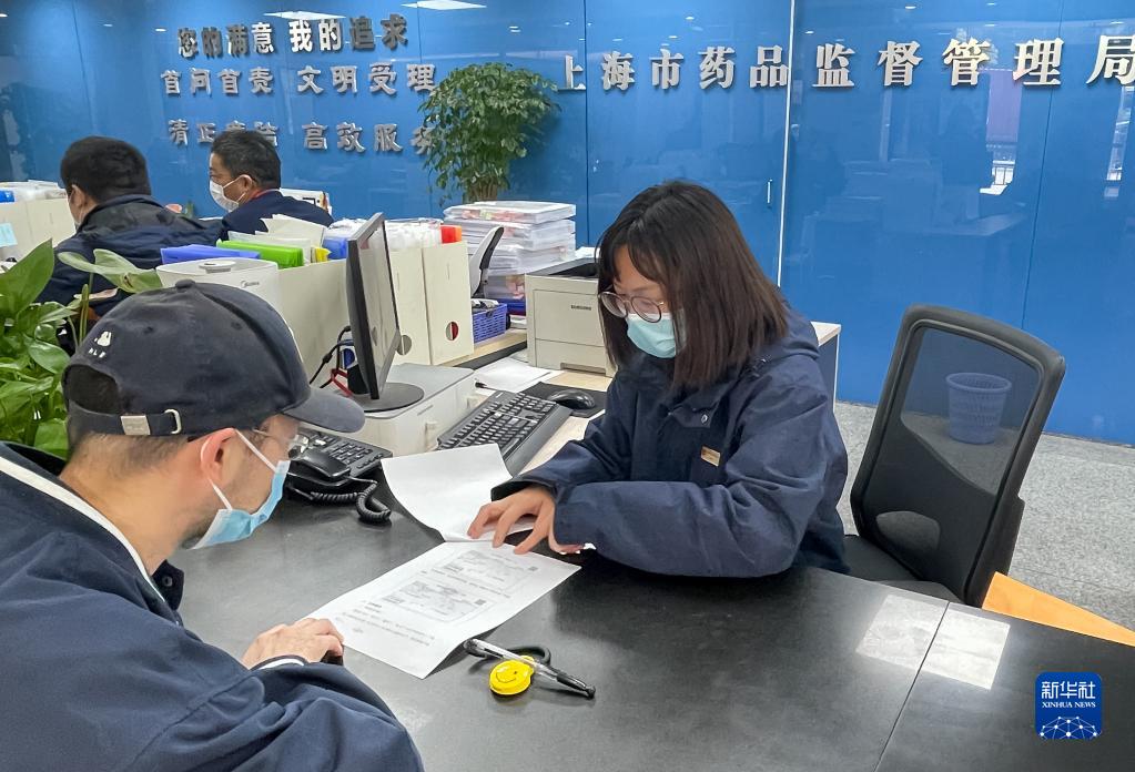3月10日,上海市藥品監督管理局工作人員為企業辦理業務。 新華社記者 程思琪 攝
