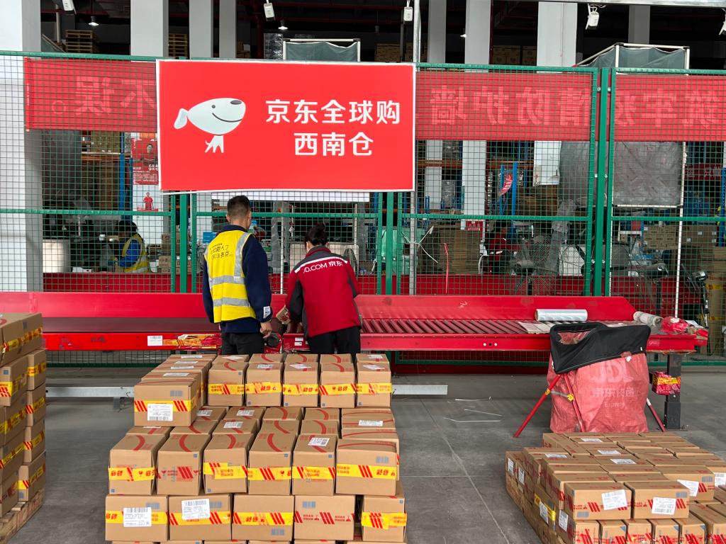 3月21日,記者在位于重慶公路物流基地的京東全球購西南倉看到,來自世界各地的商品匯集于此,供線上消費者挑選。