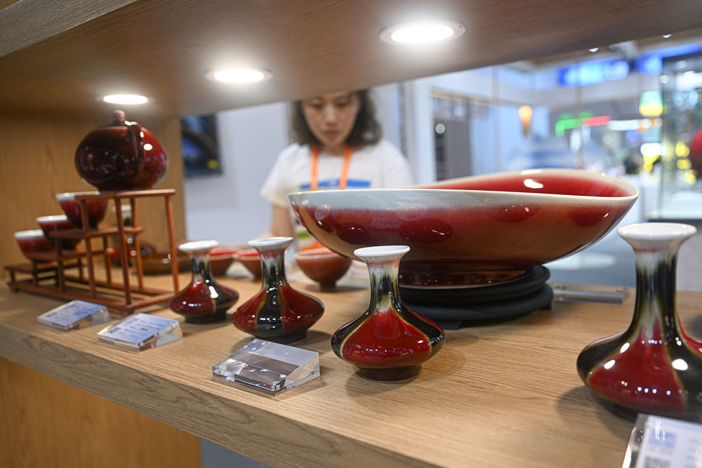 4月8日在第三屆中國國際消費品博覽會展區拍攝的景德鎮瓷器。新華社記者 蒲曉旭 攝