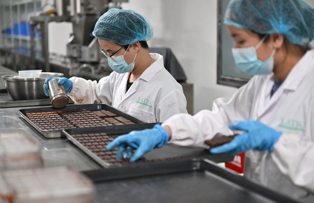 4月6日,加綠巧食品制造業(海南)有限責任公司的工作人員在制作手工巧克力。新華社記者 郭程 攝
