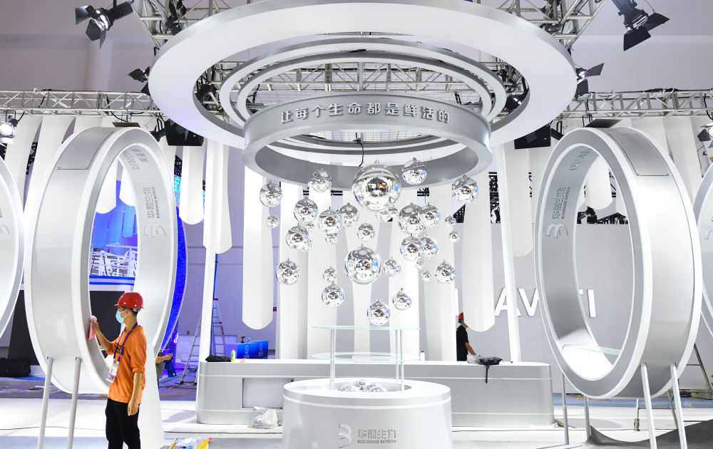 這是參加第三屆消博會的華熙生物企業展臺(4月6日攝)。新華社記者 楊冠宇 攝