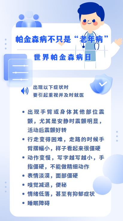 4月11日是世界帕金森病日。帕金森病是一種神經系統變性疾病,在60歲以上老年人群中高發,卻并不是老年人的“專屬”。