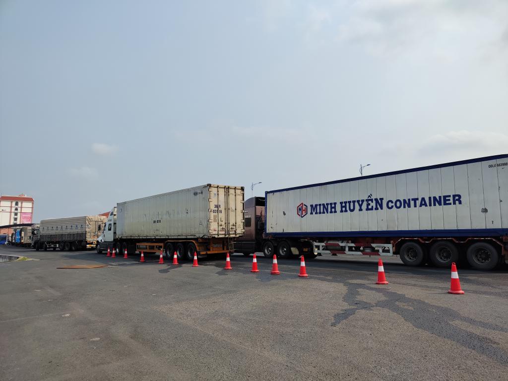 廣西防城港東興市邊民互市貿易區貨車在排隊接受出入境邊防檢查。新華社記者黃耀滕 攝