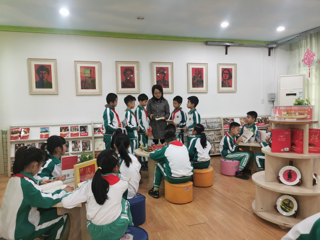 廣州市花都區駿威小學校長楊秀紅在帶領學生進行“紅色閱讀”。(黃小宇 攝)