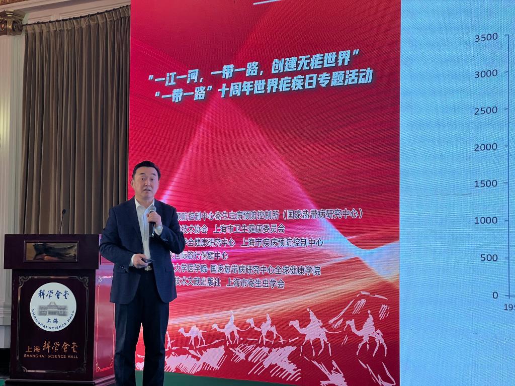 4月25日,中國疾控中心寄生蟲病所所長周曉農在“一帶一路”十周年世界防治瘧疾日專題活動現場介紹我國防治瘧疾經驗方案。新華社記者顧天成攝