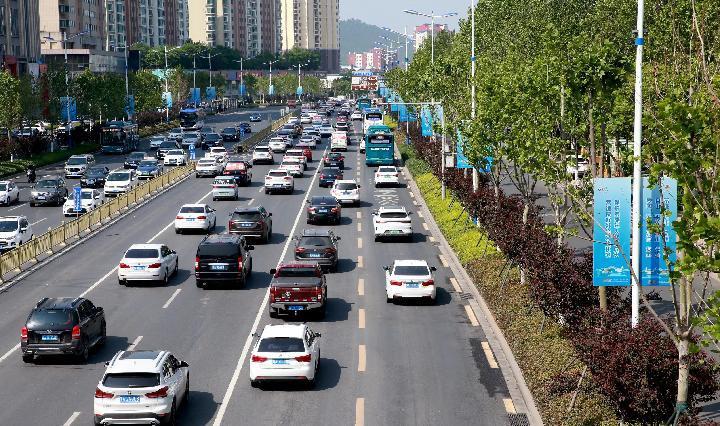 4月27日,山東省濟南市經十路公交車道平峰期允許社會車輛通行。(新華社記者王陽攝)