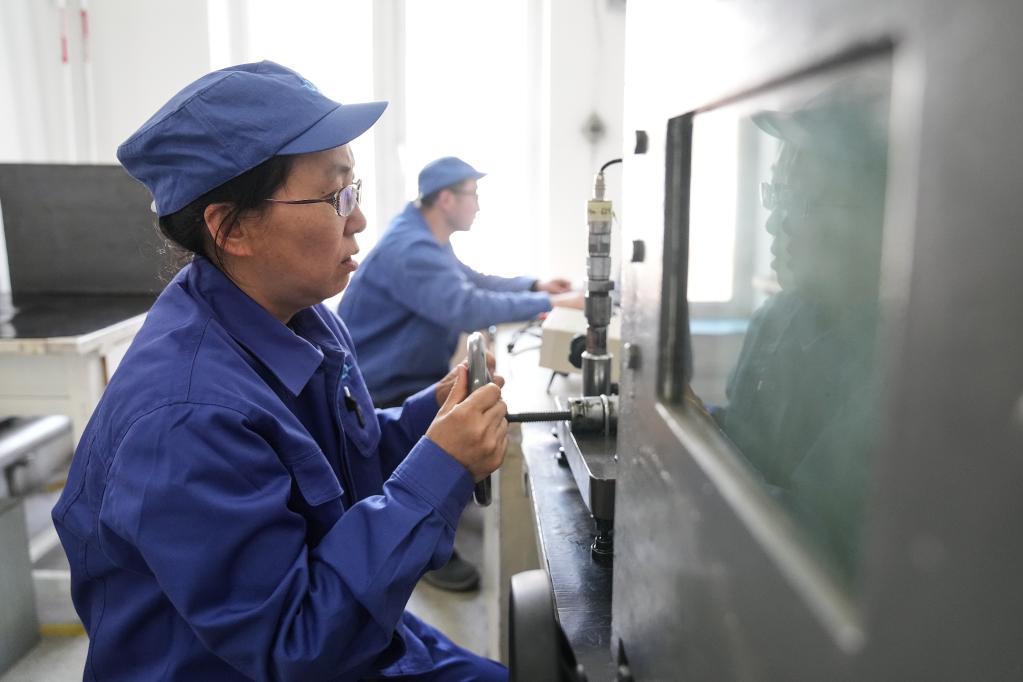 孫曉霞在檢查產品質量。新華社記者潘昱龍攝