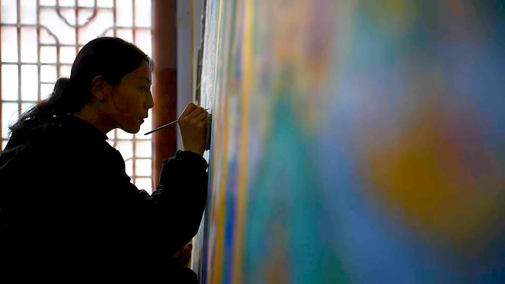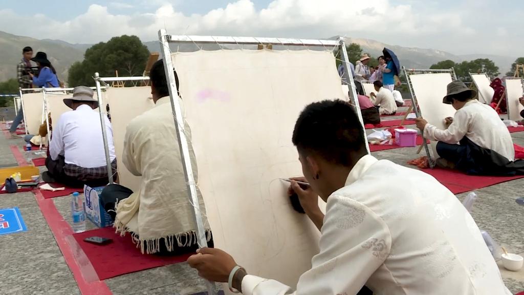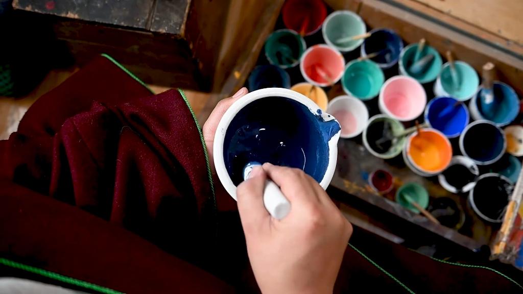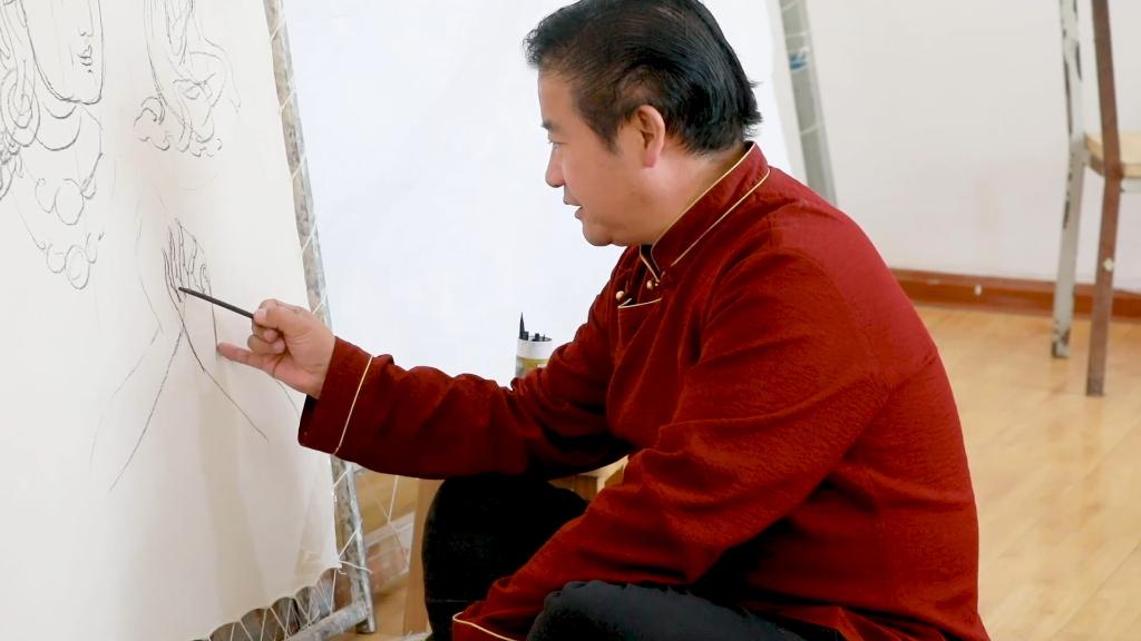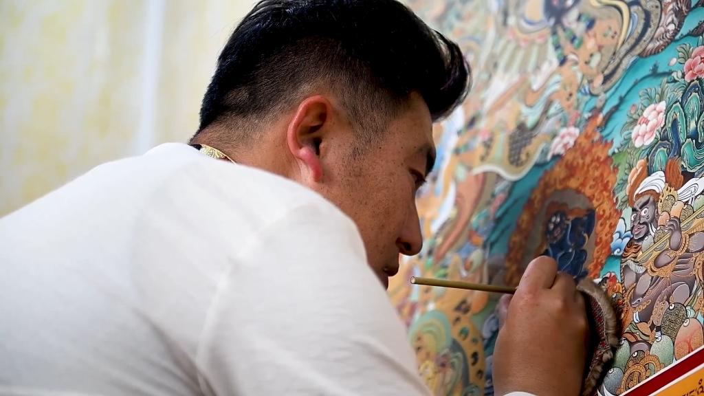 打磨布面、研制畫料、著色、暈染、勾線……唐卡創作的每一個環節都考驗著畫師的專注力和耐力。