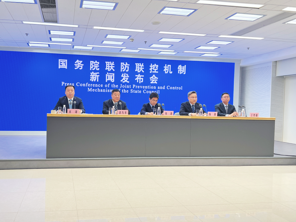 5月8日舉行的國務院聯防聯控機制新聞發布會現場。新華社記者顧天成 攝
