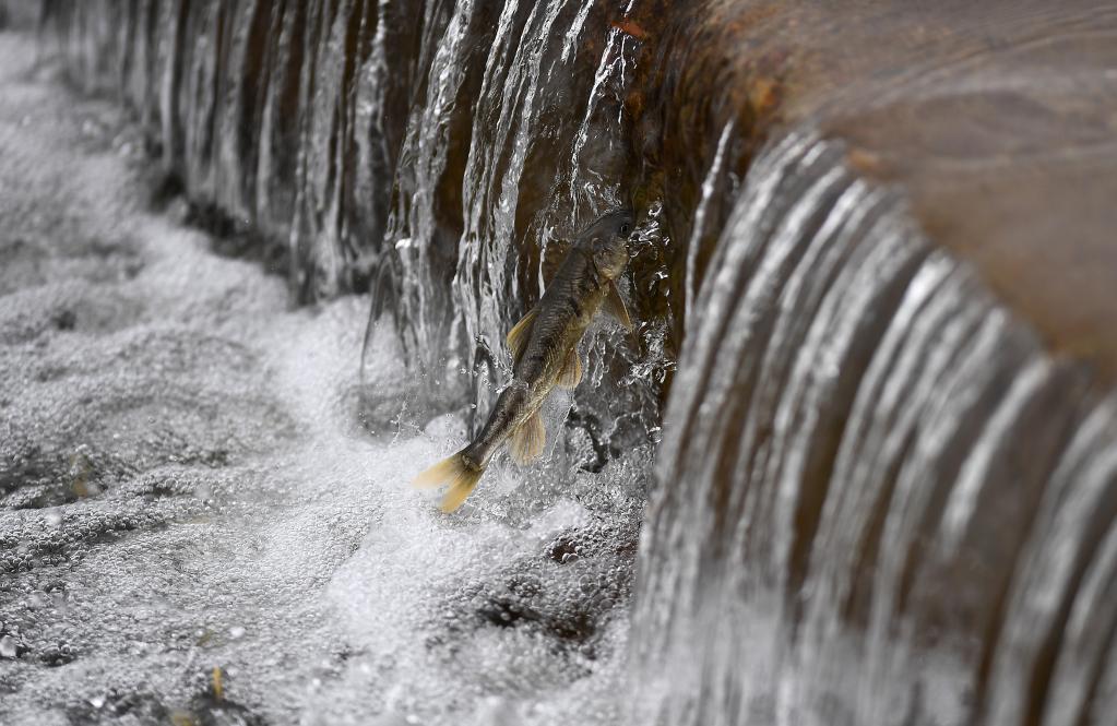 2019年7月6日,在青海省剛察縣沙柳河里,一條湟魚在洄游。