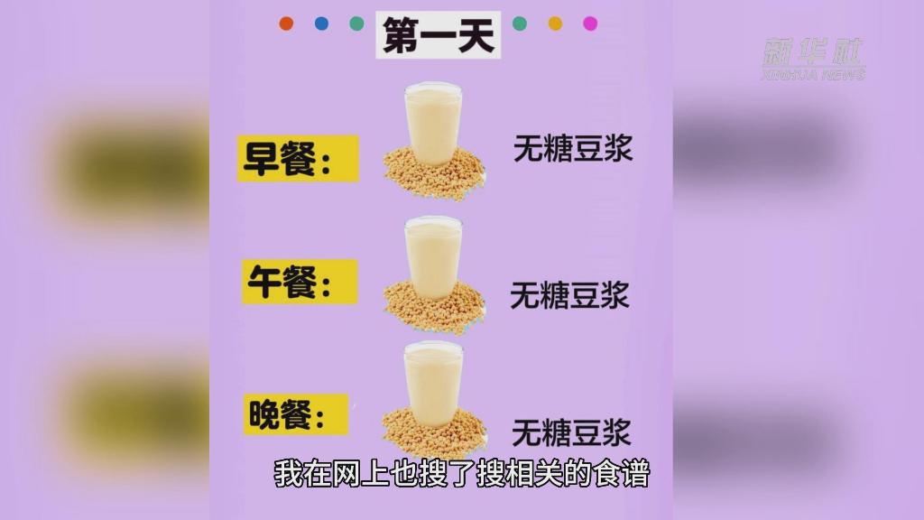近期,某明星減肥食譜沖上熱搜:第一天三頓喝豆漿,第二天三頓啃玉米……盡管強調了“演出需要,不推薦給任何人”,但還是引發眾多減肥心切的網友在線跟風“打卡”??墒菦]幾天,很多“打卡”者又紛紛在網上曬出諸多身體的不適反應。