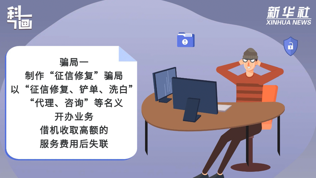 社會上不斷出現以“征信修復”“征信洗白”“征信鏟單”為誘餌的電信網絡詐騙,社會公眾不僅無法借此刪除不良信用記錄,還存在信息泄露、上當受騙、錢財損失的風險。