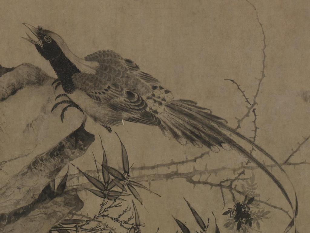 《起居平安圖》中的禽鳥刻畫精細,姿態生動,形神兼備。這只禽鳥到底屬于哪種禽鳥?趙艷玲介紹,已故著名書畫鑒定家徐邦達將其定名為錦雉,著名美術史論家、書畫家徐建融則將其定名為藍鵲。如果是錦雉(雉雞),在這里比作雄雞,取“雞鳴將旦,為人起居”之意,竹子作為平安的象征,故此畫取名“起居平安”。若是藍鵲,相傳鵲噪為喜兆,圖中的禽鳥正好也是俯身向下,張嘴鳴啼?!对娊洝分姓f“維鵲有巢,維鳩居之。之子于歸,百兩御之”,大意為:喜鵲筑成巢,布谷鳥住了進來;這位姑娘要出嫁,百輛彩車迎接她?!爸佑跉w”也是古人祝賀女子出嫁的吉祥語。