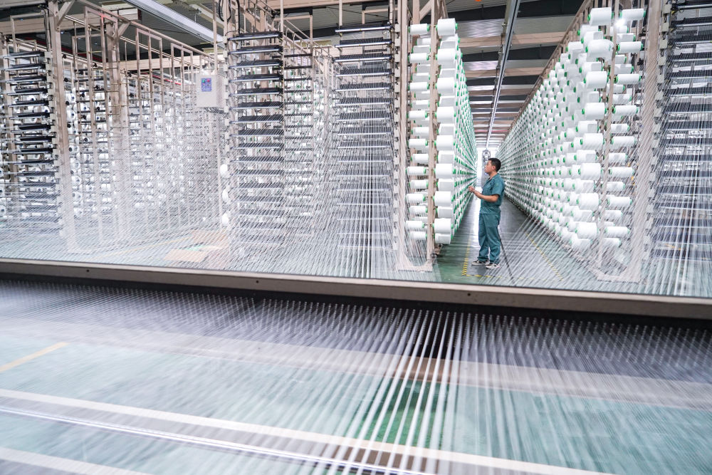 工人在位于蘇州市吳江區盛澤鎮的恒力集團博雅達紡織智能車間作業(2021年5月14日攝)。新華社記者 李博 攝