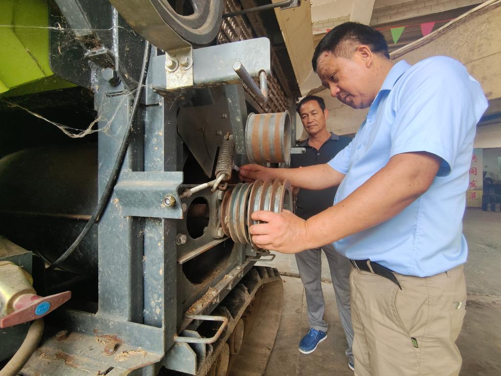 在湖南省益陽市佳澤富農業機械服務有限公司,公司負責人周碧云的工作強度逐漸增大。廠房內,他正幫助種糧大戶趙舜良調整收割機的風機系統和脫粒系統。再過一個多月,這里早稻就要收獲了。周碧云告訴記者,預計整個6月,他們要調試的收割機將超過200臺。
