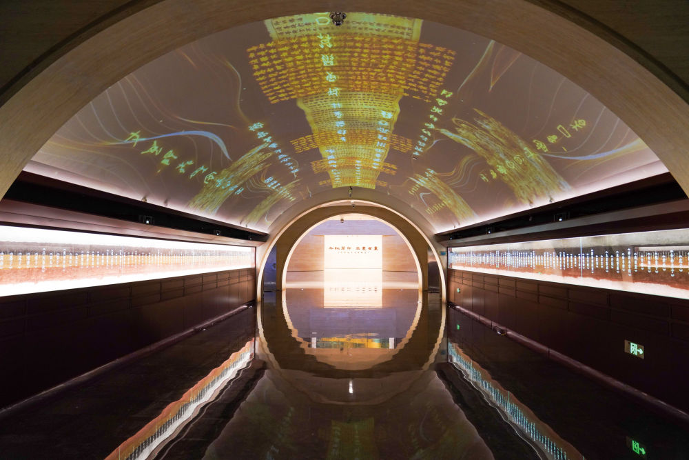 漫步其中,從詮釋藏書文化的“文瀚八景”到國家書房內源于宋代天文石刻圖的星空穹頂,從呈現中國歷代書法繪畫經典的文化長廊到洞庫拱頂獨具東方美學韻味的飛天壁畫,富含中國文化元素的設計隨處可見。
