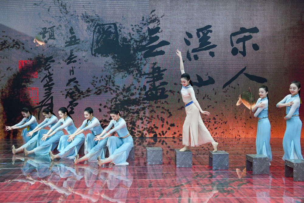 6月8日,文博會浙江展臺為觀眾帶來“光影萬象 水墨江南”演出。新華社記者 梁旭 攝