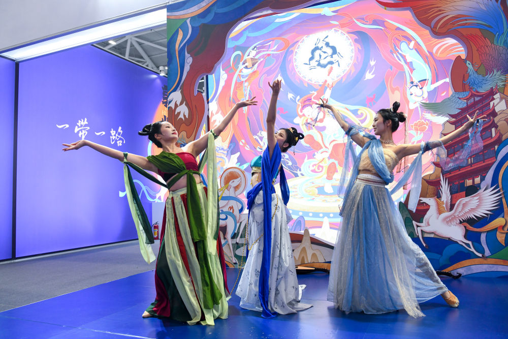 6月8日,舞蹈演員在文博會“文旅消費館·一帶一路國際館”為觀眾呈現精彩表演。新華社記者 梁旭 攝