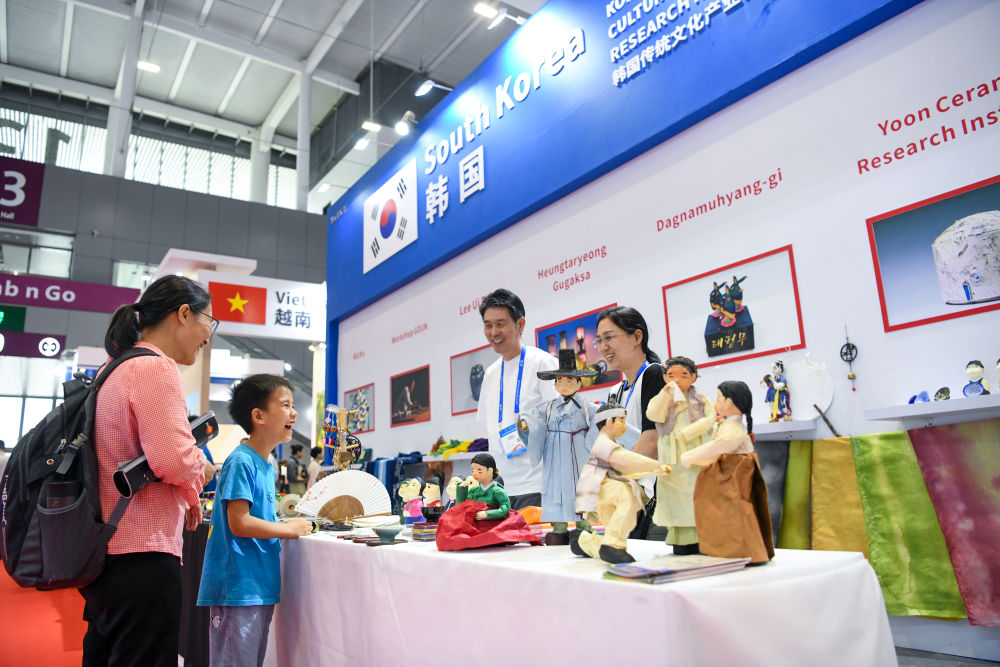 6月8日,觀眾在文博會上了解韓國的傳統商品和文化。新華社記者 梁旭 攝