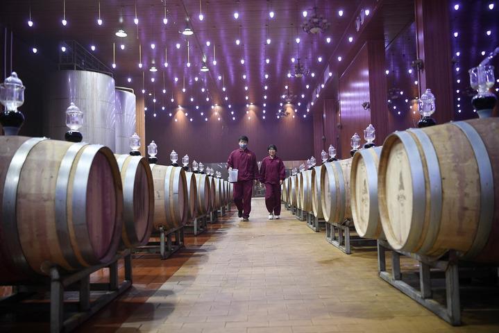 風從賀蘭山深處吹來,拂過山腳下一眼難望到頭的葡萄園。一座占地面積達5000平方米的酒窖里,自動化設備保持四季恒溫恒濕,2000個橡木桶鱗次櫛比,國際葡萄酒大賽獲獎證書一個挨著一個,擺滿了十幾米長的陳列架。