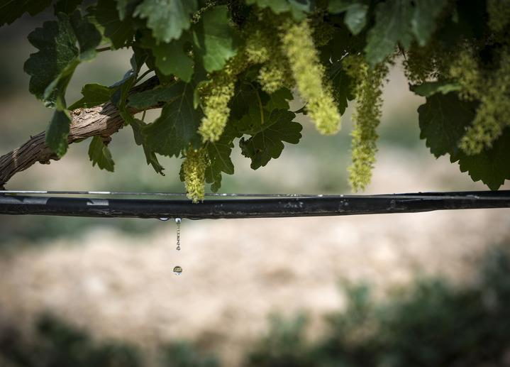 中糧長城天賦釀酒葡萄種植基地借助智慧葡萄園灌溉系統,精確控制用水量,進行調虧灌溉(6月5日攝)。新華社記者 馮開華 攝