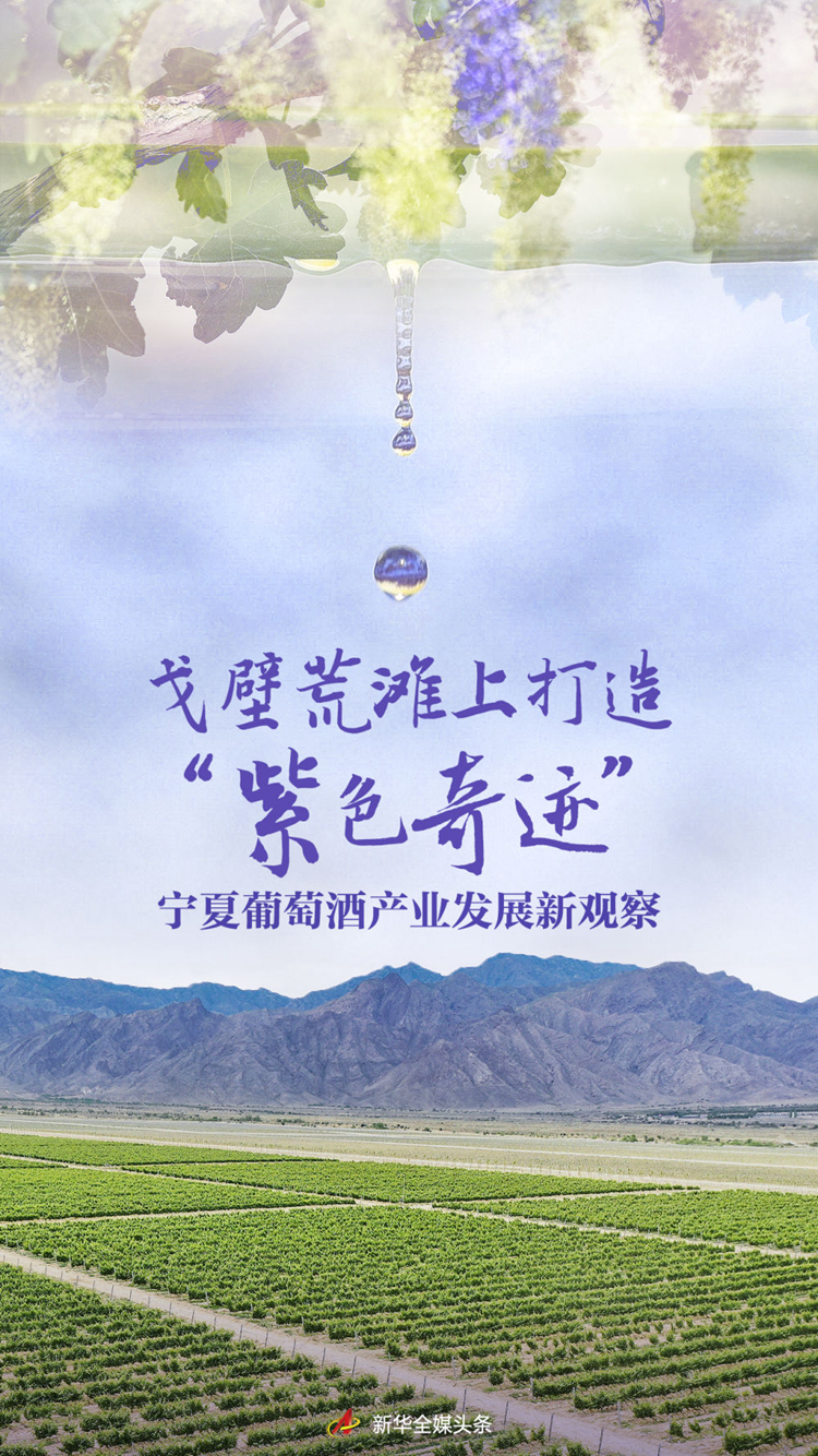 賀蘭山峰巒重疊、崖谷險峻,向東俯瞰著寧夏平原。山腳與平原之間,原是一片狹長的亙古戈壁。寧夏葡萄酒產業的興起和快速發展,讓這片戈壁荒灘成為盛產優質釀酒葡萄的寶地。如今,每年有1.38億瓶葡萄酒從這里走向全世界,不但產生可觀的“紫色經濟”效益,更托起賀蘭山東麓的“綠色希望”和助農增收的“富民夢想”。