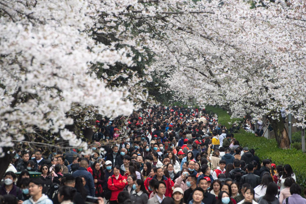 2023年3月18日,武漢大學舉行抗疫醫護賞櫻專場。新華社記者肖藝九 攝
