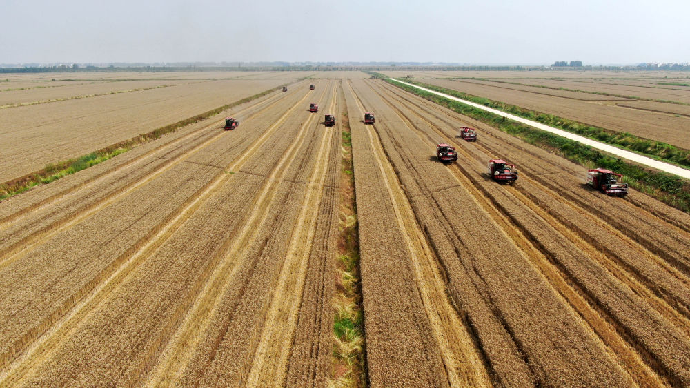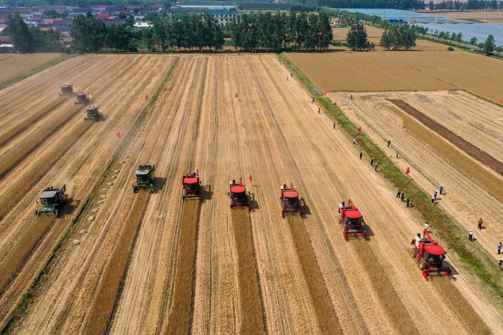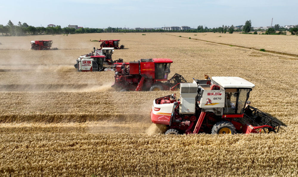 搶收壓力較大的安徽從山東、江蘇等地引入機具,“歇人不歇機”24小時搶收;由村干部、老黨員組成的應急搶收服務隊活躍在麥收一線,機動調配農機保障及時搶收。麥收高峰期,安徽日均投入收割機超過12萬臺,其中6月3日收獲小麥997萬畝,創歷史新高。