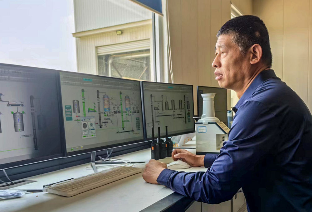 6月13日,在山東省齊河縣晏城街道糧食烘干倉儲服務中心,工作人員監測糧食烘干塔運行情況。新華社記者 陳灝 攝
