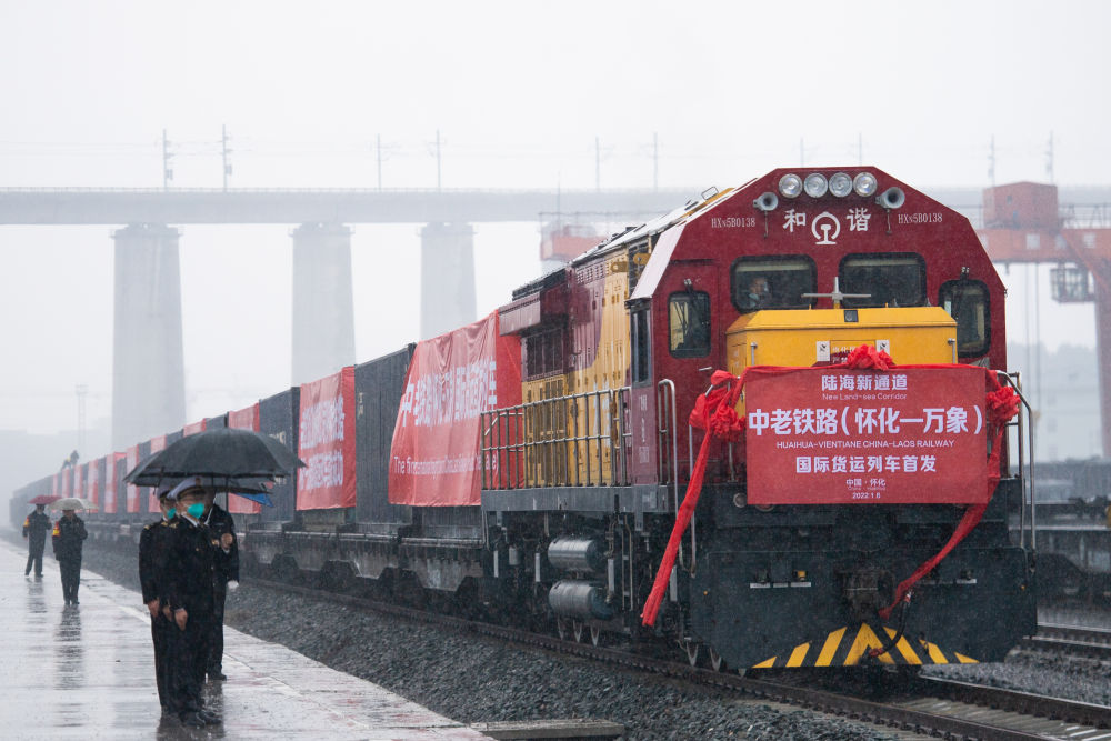 開往老撾萬象的中老鐵路(懷化—萬象)國際貨運列車在湖南懷化國際陸港準備發車(2023年1月6日攝)。新華社記者 陳思汗 攝