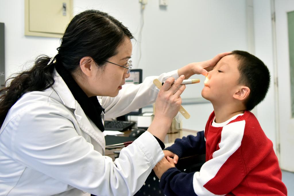 國家兒童醫學中心、北京兒童醫院過敏反應科主任向莉在為患兒做檢查。(受訪者供圖)