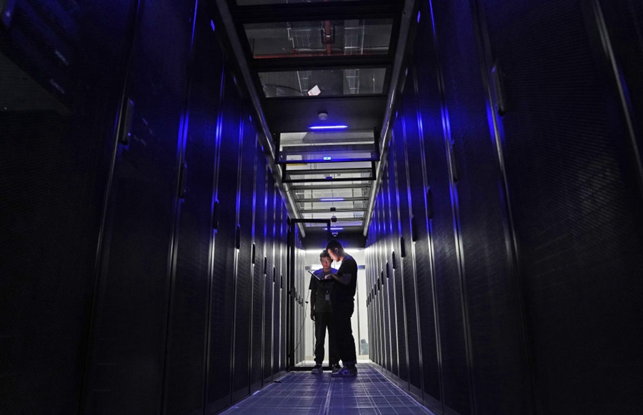 位于南昌經濟技術開發區的中國聯通智·云數據中心,工作人員在檢查服務器運行情況 萬象/攝