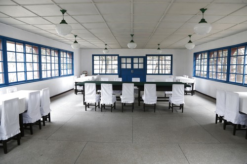 這是2019年3月5日在朝鮮板門店拍攝的朝鮮戰爭停戰協定談判會場內景。新華社記者程大雨攝