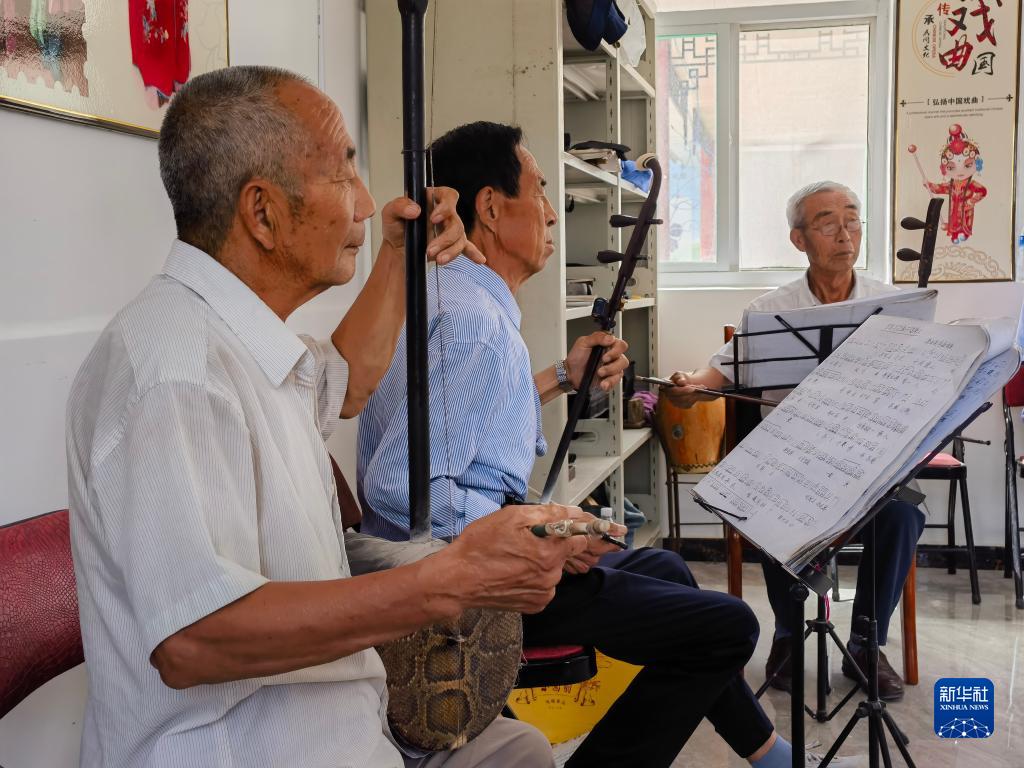 河北省灤平縣火斗山鎮拉海溝村評劇藝術團的成員在排練節目(7月5日攝,手機照片)。新華社記者 牟宇 攝