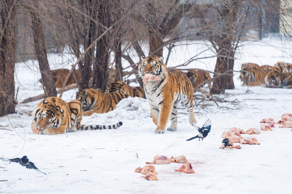2022年1月15日,黑龍江東北虎林園的東北虎在進食。新華社記者謝劍飛 攝