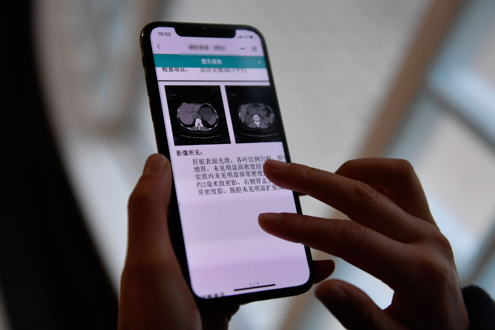 2021年1月20日,在杭州市余杭區第一人民醫院,居民通過手機使用“健康余杭智慧云共享平臺”查看檢查圖文報告。新華社記者 黃宗治 攝