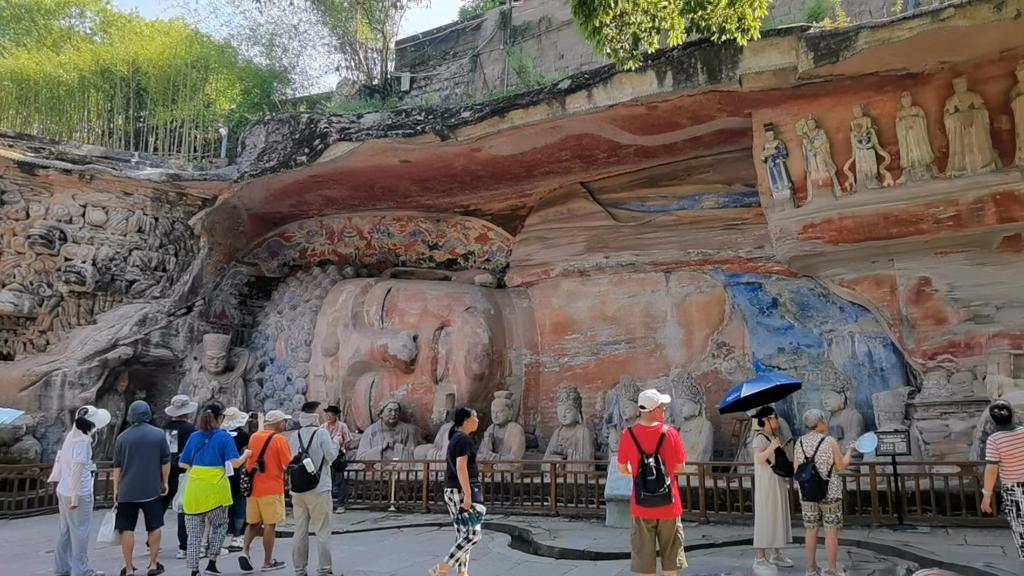 8月19日,游客在大足石刻寶頂山景區參觀。新華社記者楊湛菲攝