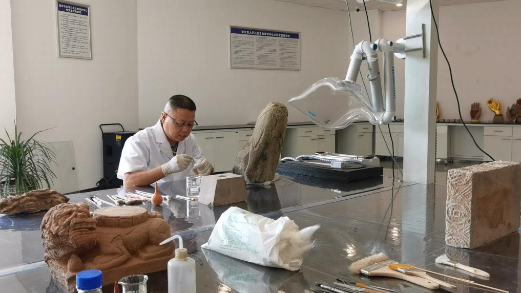 在大足石刻寶頂山景區外,有一處集文物病害診斷分析、保護修復、文物數字化、保護成果展示、公眾研學和互動體驗等為一體的“文物全科醫院”。這里試驗設備一應俱全,研究人員身穿白大褂,小心地為文物“診斷疾病”,為可移動文物修復和石窟寺文物取樣分析提供解決方案,延續它們的“生命”。