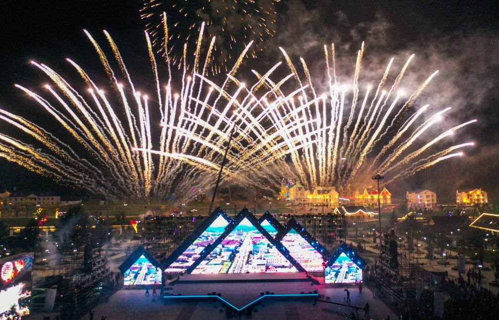 第四篇章“十年蝶變”以運動表演秀點燃全場激情。晚會從遠古走來,走到燈火爛漫的現代阿爾山,彩色的焰火為“四季都很美”的阿爾山繪寫出美好藍圖,漫天煙花映照出觀眾的喜悅臉龐。