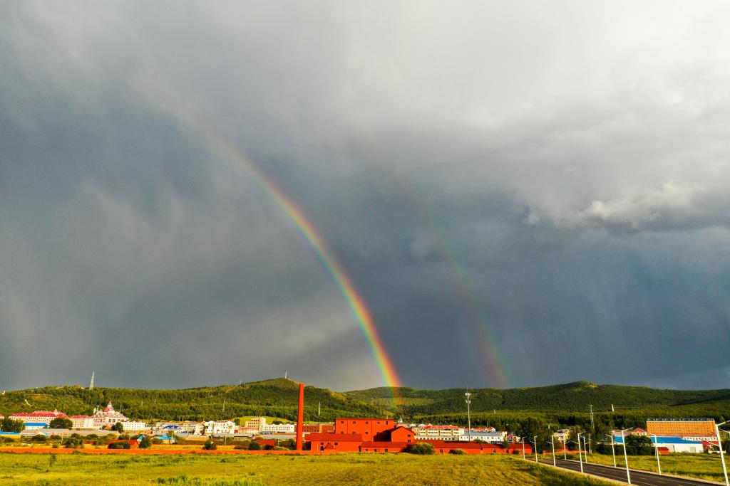 這是8月31日拍攝的阿爾山市的彩虹(無人機照片)。新華每日電訊記者 連振 攝
