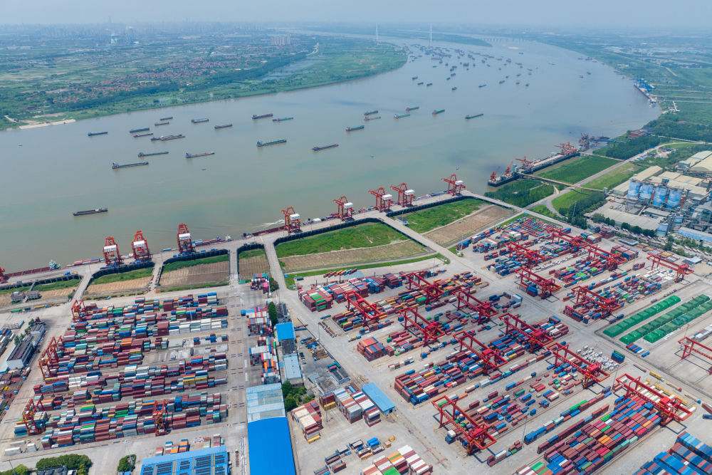 7月5日拍攝的武漢陽邏港一期碼頭(無人機照片)。新華社記者 伍志尊 攝