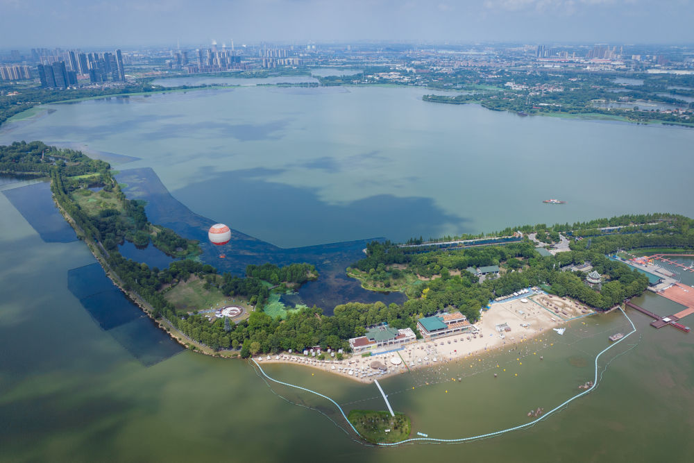 7月23日拍攝的武漢東湖(無人機照片)。新華社記者 伍志尊 攝