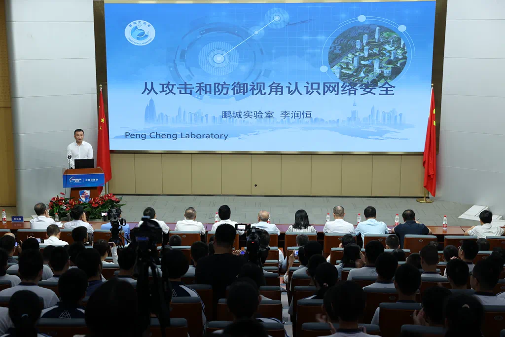 與此同時,網絡安全宣傳也在各個校園里如火如荼地開展。在福州三中,鵬城實驗室新型網絡研究部網絡平臺所主任設計師李潤恒為師生們帶來一場專題講座,從攻擊和防御視角來認識網絡安全。
