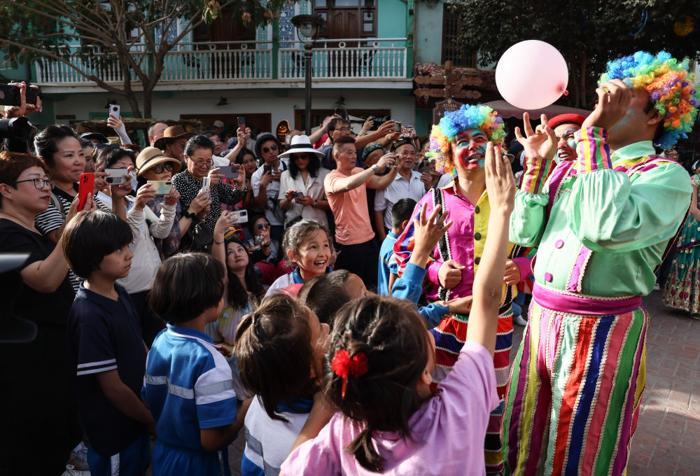 演員與小朋友在新疆喀什古城景區互動(2023年9月7日攝)。新華社記者 蘭紅光 攝