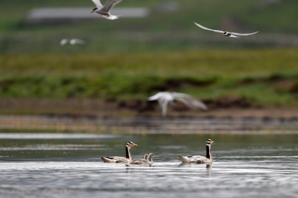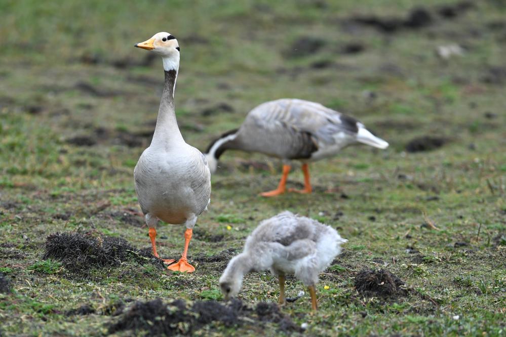 這是在甘肅尕海則岔國家級自然保護區的尕海濕地上拍攝的斑頭雁。 新華社記者 陳斌 攝